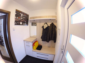 - laminátová podlaha nebo koberec v obytných místnostech a na chodbě v podkroví, v ostatních místnostech dlažba