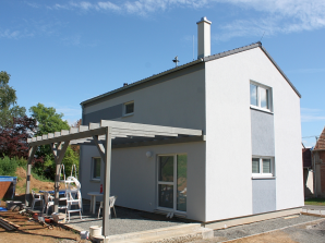 - obvodové stěny s vnitřní izolací 120 + 40 mm a vnější termofasádou 150 mm uzavřenou strukturní barevnou omítkou