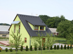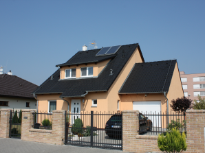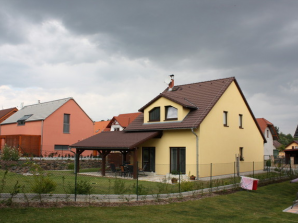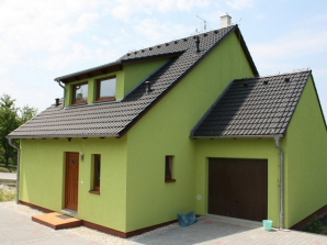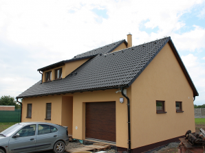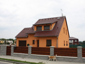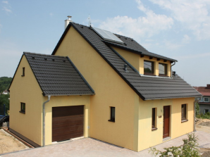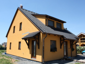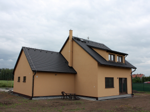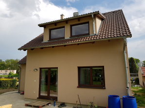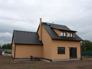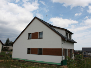 - obvodové stěny s vnitřní izolací 120 + 40 mm a vnější termofasádou 150 mm uzavřenou strukturní barevnou omítkou