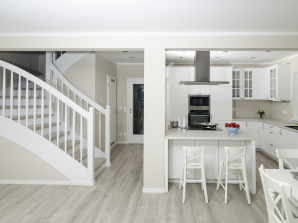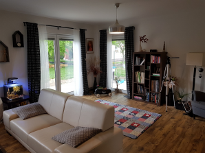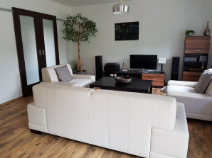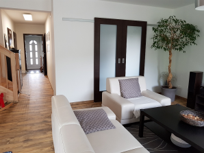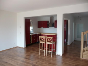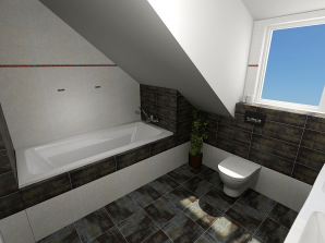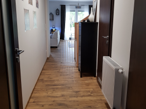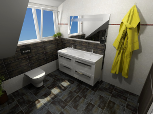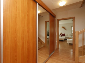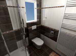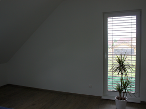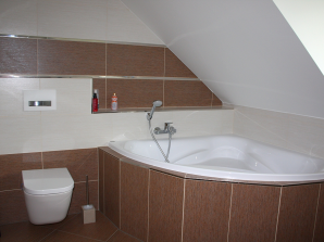 - laminátová podlaha nebo koberec v obytných místnostech a na chodbě v podkroví, v ostatních místnostech dlažba