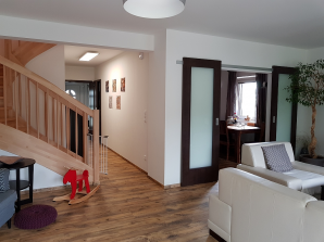 - schodiště mezi přízemím a obytným podkrovím v provedení buková spárovka